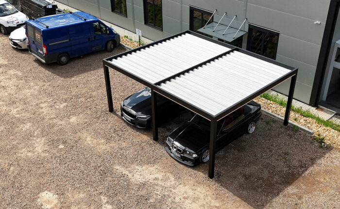 Możesz wybrać różne rozmiary — od małych modeli na jedno auto, po większe na kilka pojazdów. Wolnostojące zadaszenia można rozbudować na późniejszym etapie, dodając na przykład dodatkowe miejsca postojowe lub schowki na narzędzia.